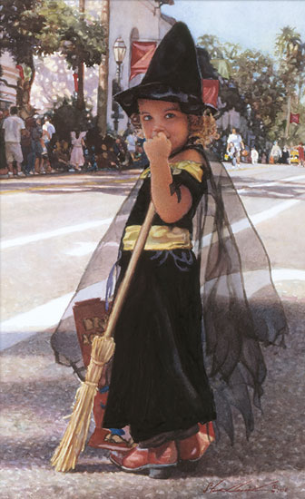 While in downtown Santa Barbara, California, Steve Hanks happened upon a Halloween parade. “It really just fell into my lap,” he says. “It’s a great thing to paint. Children in costume have become a favorite subject of mine because they wear them with such comfort and pride. I love their innocent unselfconsciousness.”
